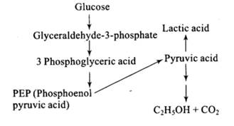 The process is known as fermentation. After the glycolysis process, which doesn’t require oxygen. We obtain pyruvic acid. Now if the cells have oxygen present, i.e., aerobic conditions are present in the cell, then this pyruvic acid goes on to the citric acid cycle or tricarboxylic cycle in the mitochondria. But when there are anaerobic conditions the pyruvic acid gets converted to either lactic acid and it is known as homolactic fermentation. For examples, when our muscles do not receive oxygen, then homolactic fermentation occurs.