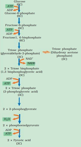 A simple flowchart of steps involvedin glycolysis is shown below :