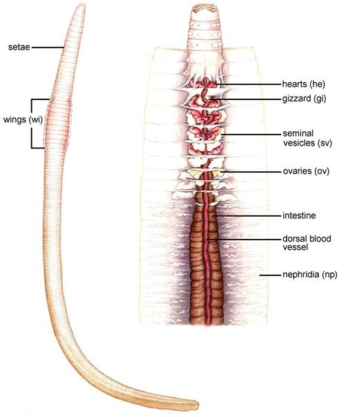 Nephridia are coiled tubular duct-like structures that are responsible to filter and remove wastes from the body of an earthworm. The nephridia are usually grouped in pairs throughout the different segments of the earthworm's body.