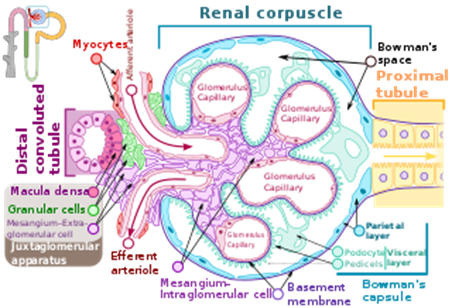 A renal corpuscle is the part of the functional unit of kidney called nephron which is responsible for filtration of blood. It is having the glomerulus which is a tuft of capillaries together and a glomerular capsule which is known as Bowman's capsule. Each nephron has a renal corpuscle.