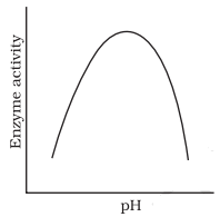 Enzymes are proteins. Proteins are long chains of aminoacids linked to each other by peptide bonds. Aminoacids have many functional groups in their structure. These functional groups are, many of them at least, ionisable. As they are weak acids and bases in chemical nature, this ionization is influenced by pH of the solution. For many enzymes, activity is influenced by surrounding pH. This is depicted in the curve below, explain briefly.