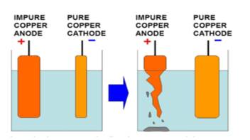 A strip of impure copper metal is given to you. Describe briefly how you will purify it by using the chemical effect of electric current. Draw a labelled diagram of the experimental set up used for this purpose.