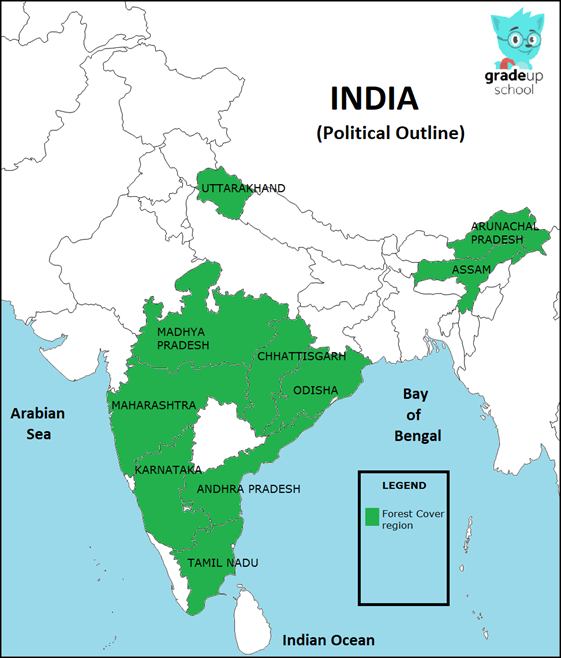 (i) Prepare a map of India showing the distribution of different types of forests.