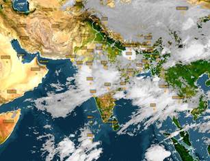 The clouds extend from north-east to south-west direction, indicating the south-west monsoons that prevail over the subcontinent during June-July.