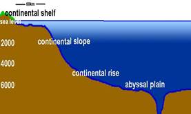 The picture shows the relative extent of continental slope, when compared to other geographical features in the sea.