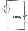 A closed surface S is constructed around a conducting wire connected to a battery and a switch. As the switch is closed, the free electrons in the wire start moving along the wire. In any time interval, the number of electrons entering the closed surface S is equal to the number of electrons leaving it. On closing the switch, the flux of the electric field through the closed surface.