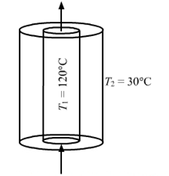 Steam at 120°C is continuously passed through a 50 cm long rubber tube of inner and outer radii 1.0 cm and 1.2 cm. The room temperature is 30°C. Calculate the rate of heat flow through the walls of the tube. Thermal conductivity of rubber = 0.15 J s–1 m–1 °C–1.