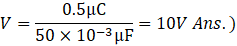 The capacitance between the plates, C is 50 nF=50× 10–3 μF