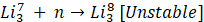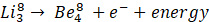 ejects and electron to convert to more stable Be and which in turn ejects two α particles