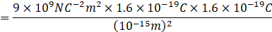 Find the electric force between two protons separated by a distance of 1 fermi (1 fermi = 10–15 m). The protons are a nucleus remain at a separation of this order.