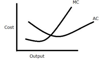 (b) Explain the relation between Average Cost (AC) curve and Marginal Cost (MC) curve using the diagram.