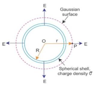 (ii) Inside the shell: The Gaussian surface will be spherical again. In this case, no charge will be enclosed.