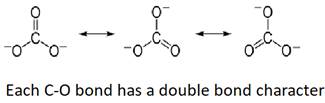Carbonate ion is present in the form of a resonating structure. These structures are equivalenting to nature. Resonance all 3 C-O bonds get a double character in one of the resonating structures.
