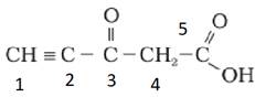 The hybridization of Carbon 1 is sp, carbon 2 is sp, carbon 3 sp2, carbon 4 is sp3 and carbon 5 is sp2.