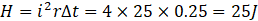 Thermal energy developed in the coil (H) during its removal in time interval Δt=0.25s is given by