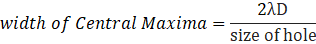 where λ is the wavelength of light used and D is the diameter of hole or circular slit
