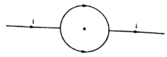 A conducting circular loop of radius a is connected to two long, straight wires. The straight wires carry a current i as shown in figure. Find the magnetic field B at the centre of the loop.
