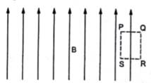 Sometimes we show an idealized magnetic field which is uniform in a given region and falls to zero abruptly. One such field is represented in figure. Using Ampere’s law over the path PQRS, show that such a field is not possible.