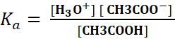 CH3COOH + H2O H3O+ + CH3COO-
