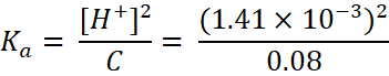 pH of 0.08 mol dm-3 HOCl solution is 2.85. Calculate its ionisation constant.