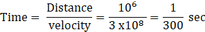 The house of yogi is 1000km away from his guru in Himalayan cave. The velocity of travelling of the thoughts should be maximum so that it can reach to his guru in minimum time. The maximum velocity that can be attained is speed of light i.e. 3 x 108 m/sec.