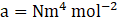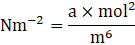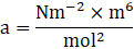 The unit of ‘a’ when the pressure is taken in Nm-2, number of moles in “mol” and volume in m3 is![]()