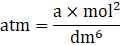 What will be the unit of ‘a’ when pressure is in atmosphere and volume in dm3?