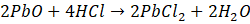 2PbO + 4HCl 2PbCl2 + 2H2O
