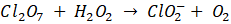 (iii) Dichlorine heptaoxide (Cl2O7) in gaseous state combines with an aqueous solution of hydrogen peroxide in acidic medium to give chlorite ion (ClO2-) and oxygen gas.