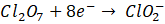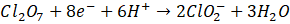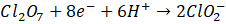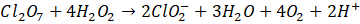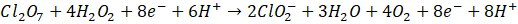 (iii) Dichlorine heptaoxide (Cl2O7 ) in gaseous state combines with an aqueous solution of hydrogen peroxide in acidic medium to give chlorite ion (ClO2- ) and oxygen gas.