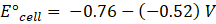 For cathode E°cathode = -0.76 V