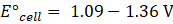 For cathode E°cathode = 1.09 V