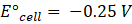 E°cathode = -0.44 V