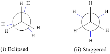 Staggered configuration is more stable as compared to eclipsed, as there is less C – H bond pair repulsion and the atoms are at maximum distance away from each other. The C – H bond pair repulsion leads to torsional strain which is maximum when ethane is in eclipsed form. Also from the diagram it is evident that the electron cloud repulsion is more in eclipsed form than is staggered arrangement. Ethane, at all time, can exist in both of these forms as the energy to convert one form into another isonly 12.5 kJ mol-, which can be made available at room temperature.