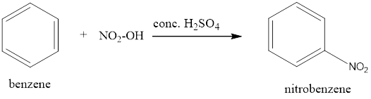 Benzene when treated with nitrating mixture i.e. conc. HNO3 and H2SO4, undergoes nitration to gives nitrobenzene as the major product.