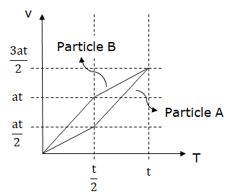 Two particles A and B start from rest and move for equal time on a straight line. The particle A has an acceleration a for the first half of the total time and 2a for the second half. The particle B has an acceleration