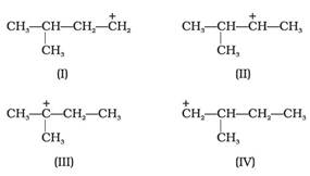 Write structures of various carbocation that can be obtained from 2-methylbutane. Arrange these carbocation in order of increasing stability.