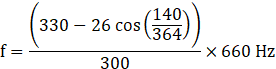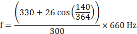 A sound source, fixed at the origin, is continuously emitting sound at a frequency of 660 Hz. The sound travels in air at a speed of 330 m s-1. A listener is moving along the line x=336 m at a constant speed of 26 m s-1. Find the frequency of the sound as observed by the listener when he is (a) at y = — 140 m, (b) at y = 0 and (c) at y = 140 m.