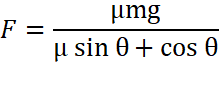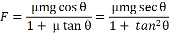 The applied force F should be minimum, when μ sin θ + cos θ is maximum.
