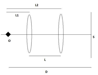 Therefore, the distance between the lenses that gives sharp image twice is.