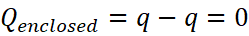 The given Gaussian surface encloses a dipole. Therefore, the charge enclosed is