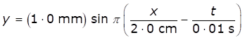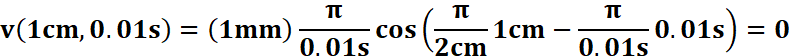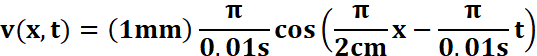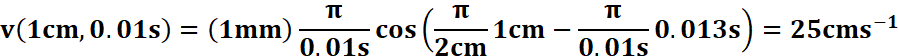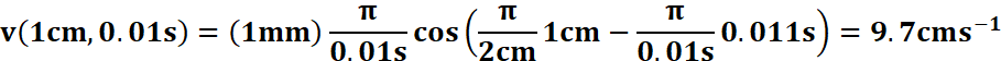 (A) Find the time period and the wavelength? (B) Write the equation for the velocity of the particles. Find the speed of the particle at x = 10 cm at time t = 001 s. (C) What are the speeds of the particles at x = 30 cm, 50 cm and 70 cm at t = 001 s?