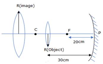 A particle goes in a circle of radius 2.0 cm. A concave mirror of focal length 20 cm is place with its principal axis passing through the center of the circle and perpendicular to its plane. The distance between the pole of the mirror and the center of the circle is 30 cm. Calculate the radius of the circle formed by the image.