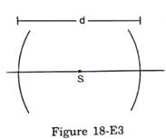 A point source S is placed midway between two converging mirrors having equal focal length f as shown in figure (18-E3). Find the values of d for which only one image is formed.