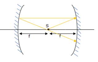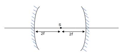 Case 1: When the source is at distance '2f' from each mirror, that is the object is at center of curvature of the mirrors. Then the image will be produced at the same point S as shown in the figure.