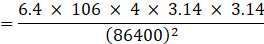 Time taken for one rotation (revolution about its axis), T = 24 hours = 24 × 60 ×60 secs
