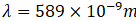 In a Young’s double slit experiment, two narrow vertical slits placed 0.800 mm apart are illuminated by the same source of yellow light of wavelength 589 nm. How