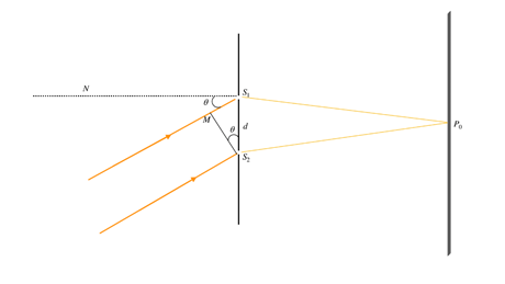 A parallel beam of monochromatic light is used in a Young’s double slit experiment. The slits are separated by a distance d and the screen is placed parallel to the plane of the slits. Show that if the incident beam makes an angle