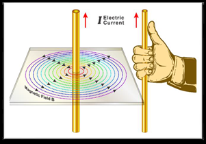 The magnetic field consists of concentric circles centred on the wire as shown in the figure.