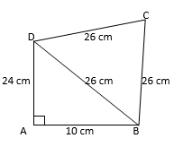 Find the area of a quadrilateral ABCD in which AD= 24 cm, BAD = 90° and BCD forms an equilateral triangle whose each side is equal to 26 cm. (Take